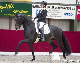 In the 5-year old division Young Rider Jeanine Nieuwenhuis scored the title aboard Great Lady TC (by Bretton Woods x Osmium). The horse won the first round with 87.5 points and also got a 10 from Van Mierlo. Simone Both and Gipsy TC (by Belissimo x Gouverneur) were the reserves with 84.5 and 90 points. Justine Mudde and the Dutch bred Genetic Black (by Jazz x Gribaldi) followed closely in third place with 83.5 points and 85. points.