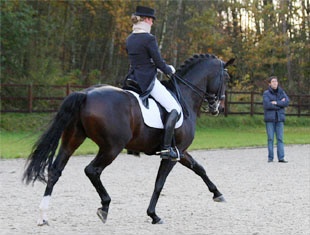 Anouck started riding again in December with a neck collar and had to overcome subsequent muscle pain with each ride. The talented young rider has been slowly preparing her rising 8-year old Oldenburg stallion Wild Diamond, which she has owned since he was a youngster, for the small tour classes. The stallion is interestingly bred as he is by Welt Hit II out of Loreana (by Don Schufro), the full sister of Emma Hindle's Diamond Hit.