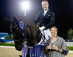 The Prix St Georges was the kick off for this great competition with 142 participants in the first week of the CDI3* which will be followed by a CDI 4* from 25 - 30 March 2014. The Dressage Tour started with 37 competitors and without doubt Anders Dahl did a wonderful performance. Right from the beginning of the test we could see Selten in a magnificent uphill frame showing great quality in the trot work. The walk pirouettes and the collected walk were very good. In the canter perhaps the weakest points were the half pirouettes, but on the other hand the flying changes and the extended canter again showed the potential this horse has. The judges' panel saw the Danish pair as the unanimous winner.