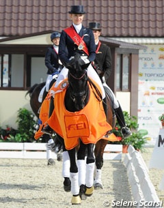The Young Riders classes at the 2014 CDI-JYR Ryazan in Russia were quite a family affair with two half-brothers collecting the top two placings all weekend, and one clear winner in all three classes: Ekaterina Melnik, who topped both the team and individual tests by a 5% margin on the 13-year-old black Russian Warmblood stallion Indor (by Intrigan).