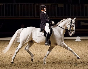 Britney Fraser (New Glasgow, NS), rode Countess to third with a score of 69.625%.