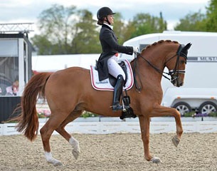With her 13-year-old Danish Warmblood gelding Atterupgaards Cassidy (by Caprimond x Donnerhall) is very eager to work. Together with her coach Rune Willum, Dufour had a successful warmup which was perfectly timed. Cassidy performed an almost foot-perfect test with the piaffe and passage as highlights in their performance. The pair scored 75.961% from a totally unanimous judging panel. On Saturday the pair had won the Grand Prix with a total of 73.4%.