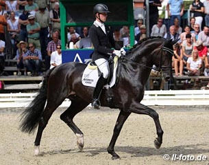 Lukas Fischer and Kerstin Klieber's Oldenburg stallion Daytona Platinum (by Dante Weltino x Charon) were the winners in group one and the overall high scorers of the entire class with a top score of 8.9 points. The black stallion got 9 for trot and canter, 8.5 for walk and submission and 9.5 for general impression. Daytona Platinum is bred by Andreas Klinker. The Rhinelander Luiz Gustavo (by Lord Carnaby x Fidertanz) covered second place with 8.6. Under Beatrice Buchwald the bay stallion, bred by Manfred Hödl and owned by Anna Schnurbusch, scored 8.5 for trot and canter, 8 for walk, and 9 for submission and general impresssion.