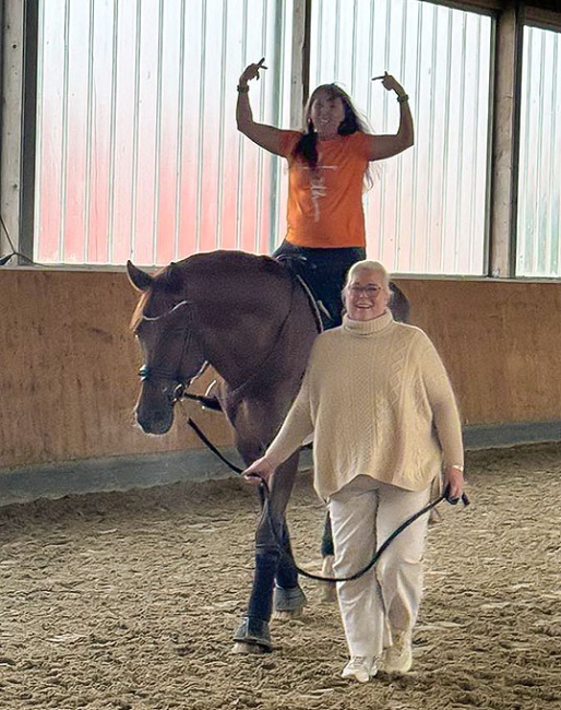 Löhmann expressed her love for Vitalis on Facebook in this anecdote, "Eugene (Reesink) once told me a story about Vitalis and I think it says everything about this stallion: He had a pasture full of foals... including Vitalis' first year. He got customers who wanted to buy a foal from Vitalis and drove with them to the pasture... They walked across the pasture together and the customers asked him: yes, but how are we supposed to recognize Vitalis' foals from all these foals? And Eugene answered, 'all those foals that come straight to you, want to be stroked and picked up and held, those are the Vitalis foals.' And it is still like that... and every rider in the world will be able to confirm this character when breaking in and under the saddle!"