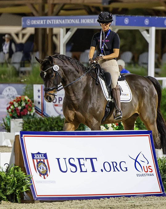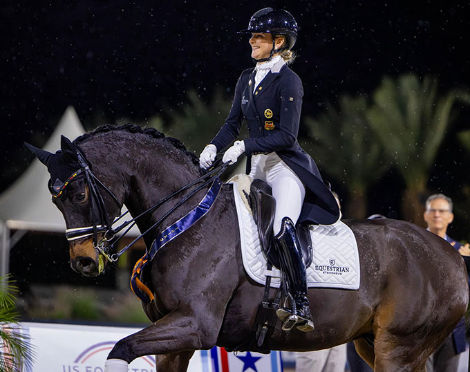 Ben Ebeling (USA) and Bellena claimed the inaugural US Equestrian Dressage Open Final at the 2025 CDI Thermal, hoisting the impressive trophy to conclude the first year of the finals across the three Olympic disciplines.
