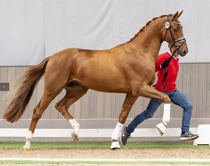 The top selling broodmare was Just Dynamic (by Jovian x Sir Donnerhall) who sold to Great Britain for 12,000 euro, The 11-year old mare Sydney M (by Sorento x Christ), who is in foal to Tesoro, went for 7,000 euro. A Hungarian bought Noortje Radstake's 7-year old mare chestnut mare Nirvana (by Vitalis x Johnson) for 6,000 euro. She is in foal to Vino Tinto. Noortje Radstake's 10-year old mare Hot Dream (by Hotline x Arpeggio), in foal to Red Viper, goes to Finland for 6,000 euro.