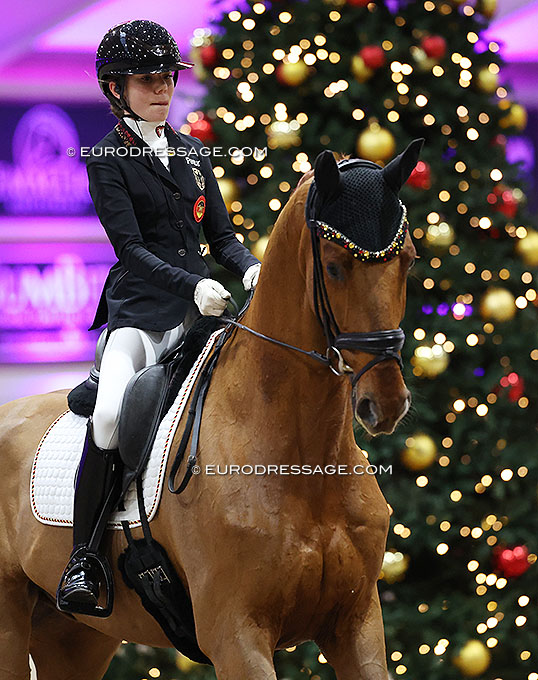 At Junior level two riders moved into the winner's circle. The team test on Friday was won by the first rider to go in the class, Dutch Mirthe Willig on the 11-year old KWPN bred liver chestnut Just Biantoes (by Desperado x Santano). The pair, who debuted in April 2024 at international junior level, scored her first CDI win on the first day of Kronenberg in 2024 and repeated that feat this year with a 70.555% earning test. The next two rounds were won by Danish team rider Rikke Schoubye Johansen on the 12-year old DWB bred Baunehoejens Carpaccio (by Charmeur x White Talisman) with 71.127% and 75.375%.