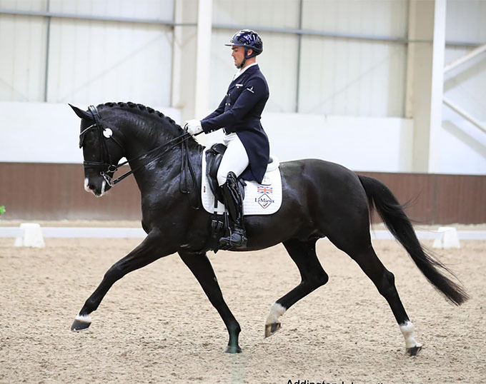 He was first shown in the U.K. by Liz Diegutis in April 2019 before Ivins rode him herself at novice level through March 2020.