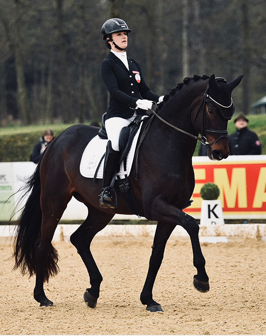In Medium (M) and Medium-Advanced (M**) dressage competitions, she has achieved scores of up to 71%, clearly highlighting her great potential and athletic quality.