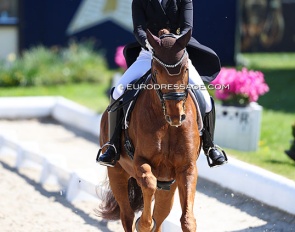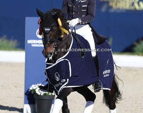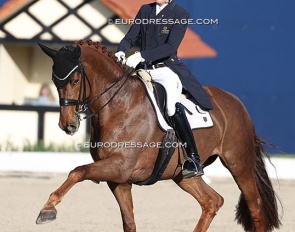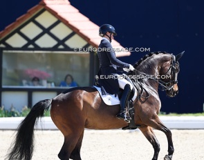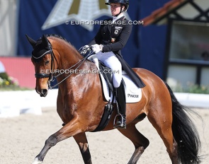 Dutch Lisette Doodhagen on the Westfalian Bonita JB (by Bernay x Dream of Heidelberg). The horse does not have ground covering gaits, but boy could she piaffe and passage.