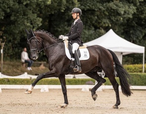 After the 2022 World Championships, U.S. team rider Katie Duerhammer never returned with Herning ride Quartett. With her second GP horse Paxton she was 7th. The Dante Weltino x Don Marco struggled in the piaffe, but had nice half passes