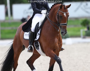 Susan Pape's Eclectisch (by Zenon x Olivi) had no oomph in the passage and piaffe today. Pity