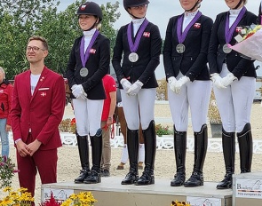 Grillo was the only woman between 1976 and 1986 who made it onto the German dressage team. Here with Uwe Sauer (left), Dr. Uwe Schulten-Baumer junior (2nd from left) and Harry Boldt (right) at Aachen 1978.