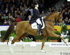 Fabienne Lütkemeier, usually a Junior rider, competed very smoothly in the freestyle tour aboard her mother's horse Amando -- and placed 4th in the qualifier and 3rd in the freestyle.
