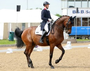 Emma Hindle and the 13-year old Westfalian mare Romy del Sol (by Romanov). Hindle is training with Carl Hester and Rudolf Zeilinger and the hot mare is finding her stride more and more in the arena. She has a stunning passage