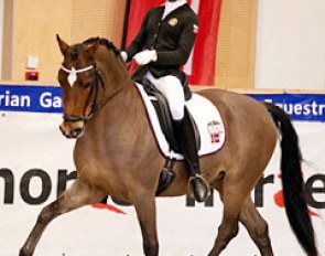 Bernadette Brune on Spirit of the Age OLD (by Stedinger) scored points with their very nice extended walk and pirouettes. The passage could have been a bit more engaged from behind and the piaffe with the hindlegs more under the body.