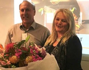 Charlotte Remy's trainer Fie Skarsoe with her son Oskar