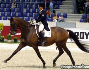 Isabell riding her fourth Grand Prix horse Polano, who is owned by K. Dörn