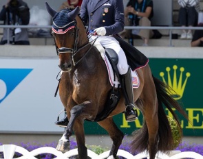 The crowd booed because they expected a higher score. Patricia Seddig's Fuchtels High Light is a very talented horse but lacked collection in canter today and the walk was rather peacocky.