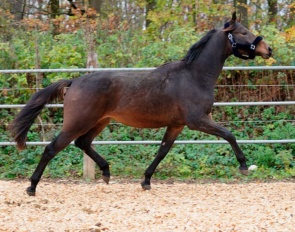 France's Mado Pinto on Sirano de Luxe (by Sir Donnerhall x De Niro). The contact was often too strong, but this horse has a great piaffe-passage