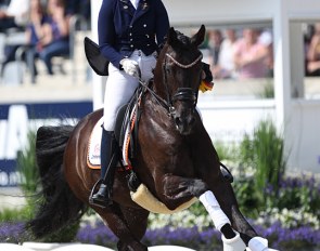 Laurence Roos and the 14-year old BWP bred Fil Rouge (by Stedinger x Argentinus) were 7th with 71.478