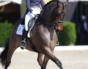 Hans Peter Minderhoud and Dream Boy rode to nice piano tunes in the piaffe and passage, the rest of the music was not catchy. The stallion showed great two tempi changes and canter half pass to the left.