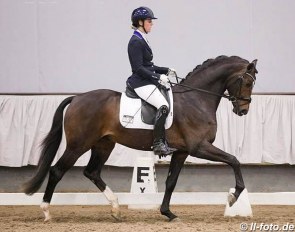 With a 75.128% in the Grand Prix Special, Charlotte Fry and Dark Legend most likely rode themselves on the British team for Rotterdam. Fry is very capable in steering the tall black through the test. Overall the horse needed to relax more and swing in the back.