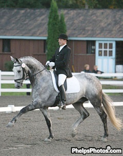 Abounding in talent and potential and blessed with three superb basic gaits -- his trot is extraterrestrial, by the way-- Dacardo won the six-year old FEI Young Horse test on Thursday in the Gold Ring at 2004 Dressage at Devon. Judges Cara Whitam and Lois Yukins gave Petersen and Dacardo a quite low winning score of 71.800% as his test had several severe hiccups.