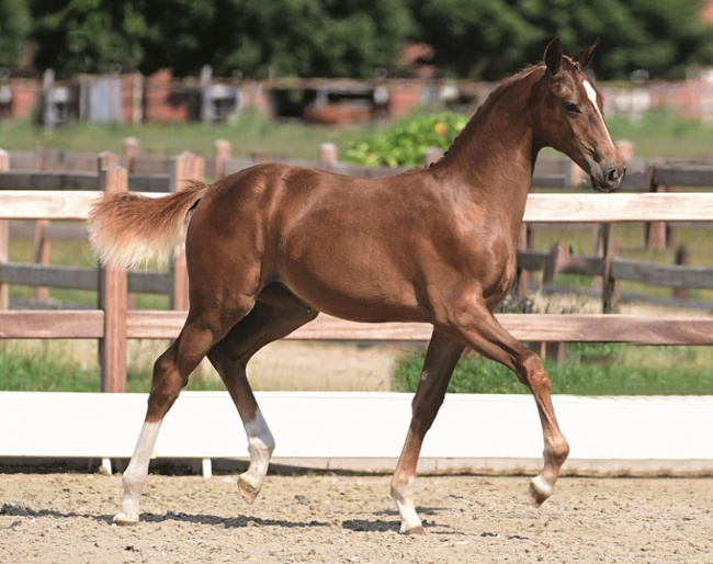 Two particularly talented movers have made it into this year’s elite foal auction selection. One of them is lot 50, an attractive filly by Quando-Quando OLD-Donnerhall son, Quantensprung. At stud at Klosterhof Medingen, Quantensprung has already attracted attention for his sport performance as well as his offspring. The 2016 Hanoverian stallion licensing in Verden saw all of his seven sons presented stallion-graded, moreover, three of them have been awarded premium status. But it is not only the sire of this fantastic filly that is special, but she has also got a high-quality dam: Not only did she become National Young Horse Champion at three-year-old, but also Oldenburg three-, four-, and five-year-old State Champion at Rastede. Under her sport name, Devil’s Bride, she went on to compete at S level with excellent results. And her siblings – Donna Fantasia and Pacific Sunset – also boast top results through S level.