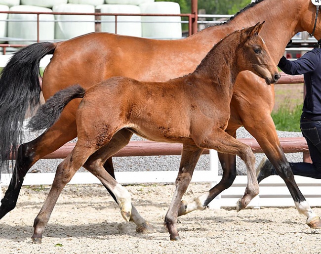 The bay filly Vilicita (by Vitalis x Furst Piccolo x Landadel) is by the highly popular breeding stallion Vitalis. He was the NRW Reserve Champion, winner of the dressage index of his stallion performance test and Champion of the Burgpokal. His offspring dominate young horse competitions around the globe, including Victoria’s Secret, winner of the World Championships for Young Dressage Horses and German Champion, as well as breeding stallion Valverde, Westphalian Champion stallion, and Villeneuve, Vice Champion of the World Championships for Young Dressage Horses and bronze medallist at the German Championships.