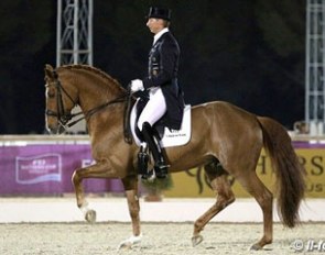 Kristina Sprehe and Desperados improved considerably in the Special. The black stallion was still a bit crooked at the start. The passage on the right lead and one tempi changes were highlights.