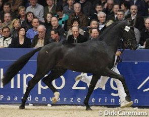 Dutch Kim Vugts on the gorgeous Westfalian stallion Feinsinn NRW, which was constantly tilting his head to the right in the consolation finals.