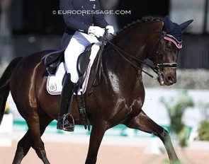 Jordi Domingo trotting up his former Spanish team horse Statesman, now owned and ridden by Naima Moreira Laliberte