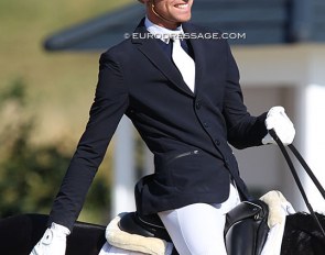 Jill Bogers' Lennox U.S. looks behind him after his final halt and salute at X
