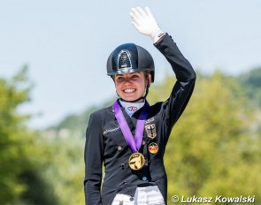 The youngest rider in the field, 11-year old Elisabeth Leduc on Campsterhoven's Baldato. Straight to an 8th place and 69.238% score in her first CDI test in her life