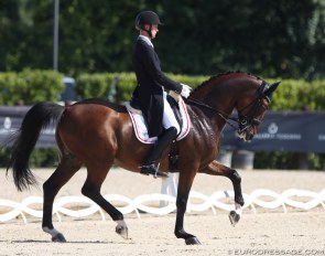German U25 team rider Ann-Kathrin Lindner on Flatley. The horse was previously shown by Matthias Bouten, Isabell Werth, and Meike Lang