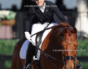 Danish Signe Kirk Kristiansen on Blue Hors Zee me Blue. She trains with U.S. based Danish born Olympian Bent Jensen
