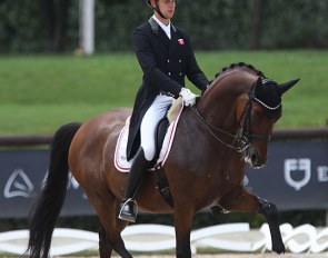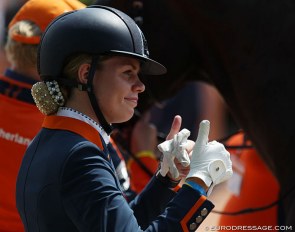 Big disappointment for Denise Nekeman. After winning individual silver in the Short Grand Prix, her Boston threw the tongue over the bit and they had to retire