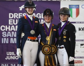 The Short Grand Prix podium: Denise Nekeman, Jeanine Nieuwenhuis, Jil Marielle Becks