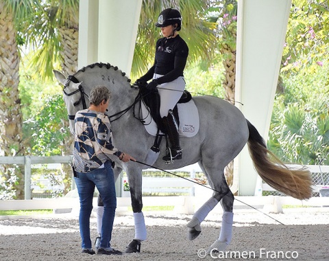 Year 2023 Event U.S. Lusitano Conference Horse Geada d'Atela Person Kyra Kyrklund, Kyle McGiver Photographer Carmen Franco Code 23_loxahatchee_mcgyver_geadadatela_01