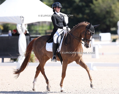 Syndey Lipar on Ingrid Klimke's former ride Firlefranz (by Franziskus x Rapallo)