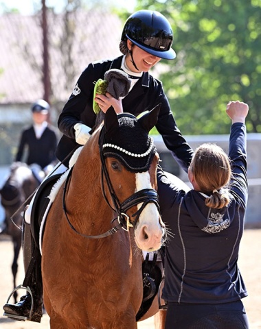 An example of self-made success: raised from the age of two and carefully started under saddle at four at Amelie von Harsdorf's stable. Winning young horse classes and qualified for the Bundeschampionate