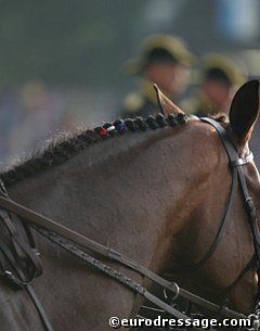 The American colours braided into the man of a horse at Aachen