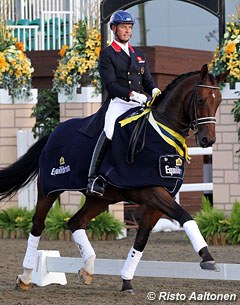 Carl Hester grabs his 60th national title at the 2012 British Championships. He did the lap of honour aboard Douglas :: Photo © Risto Aaltonen