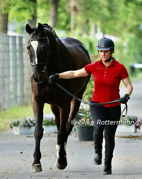 Steffen Zeibig’s wife Linda trots up their Trakehner gelding Patamon (by Windsor x Enim Pascha)