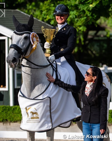 Year 2025 Event CDI-W Mariakalnok Horse Imperador dos Cedros Person Fie Skarsoe, Aniko Losonczy Photographer Lukasz Kowalski - www.lukaszkowalski.com Code 25_mariakalnok_skarsoe_imperador_01