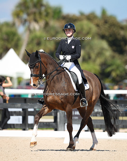 Kat Fuqua competes in show jumping and dressage. Here on Lucky Skywalker (by Lyjanero x Cordeur) in the Inter II