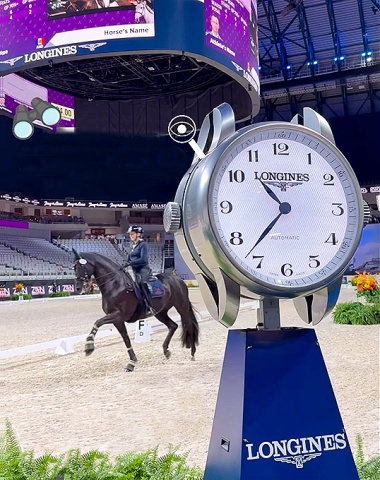 Sandra Sysojeva familiarizing Maxima Bella with the competition ring before the Grand Prix