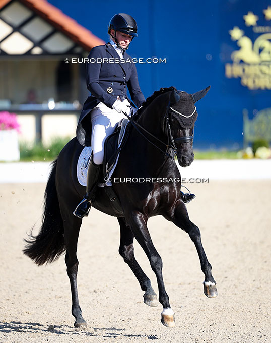 Nicole Wego on Furstin Aura (by Furst Jazz x Don Schufro). The mare sold at the 2022 PSI Auction for 1,050,000 euro. It was said she changed into Swiss ownership with a Belgian connection.