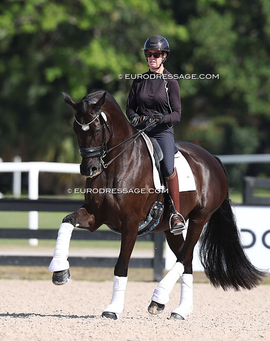 Lehua Custer schooling P.J Ramzes in Wellington. They had a 3-year break from showing before their come back this winter